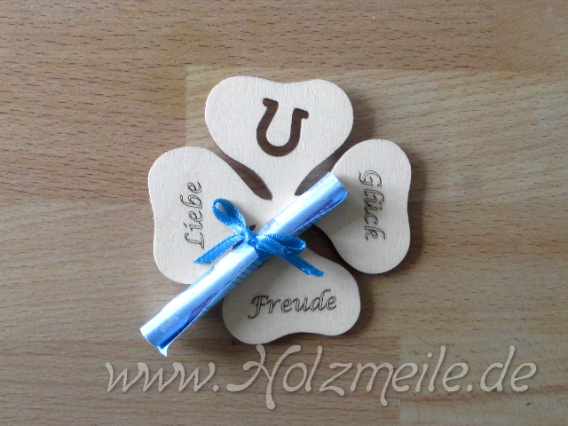 Dieses vierblättrige Kleeblatt bringt Ihnen auf allen Lebenswegen Glück, Liebe und Freude! Schenken Sie diese tollen Dinge und zaubern Sie Ihrem Gegenüber ein Lächeln ins Gesicht.