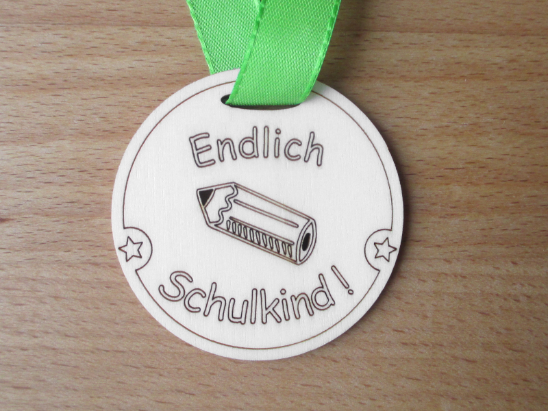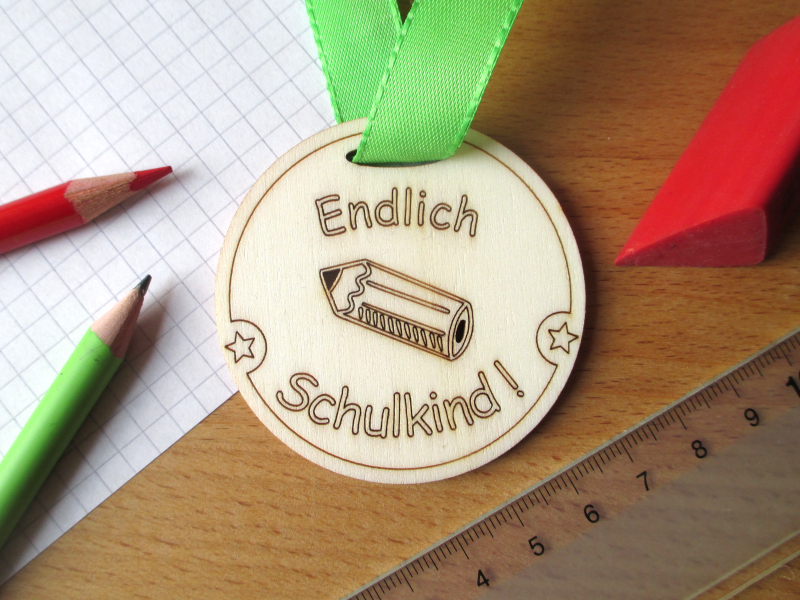 Unsere Medaille „Endlich Schulkind“ ist ein echter Hingucker. Mit liebevoller Gravur, hergestellt aus unbehandeltem 3mm Pappel-Holz in Lasercut-Technik mit Strom aus eigener Solaranlage, ist die 6 cm große Medaille der perfekte Begleiter für Einschulungsfeiern mit persönlicher Note.