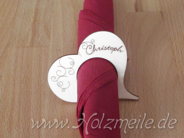Dieser Holz-Serviettenring Herz Marie "Fairy" ist mit dunkel gravierten Ornamenten versehen und daher der absolute Hingucker auf Ihrer Feier!