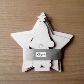 Das Steckset besteht aus drei Teilen: der insgesamt 8,5 cm große Wichtel Egon wird erst in den Schlitz des 9 cm breiten oberen Sterns gesteckt (das ist der mit dem Loch für das Teelicht), dann in den Schlitz des gut 10 cm breiten unteren Sterns - FERTIG!